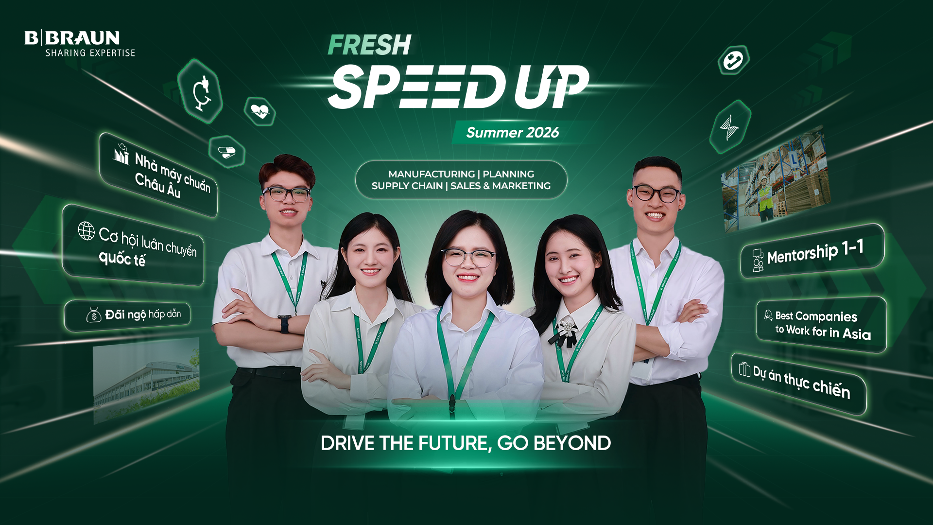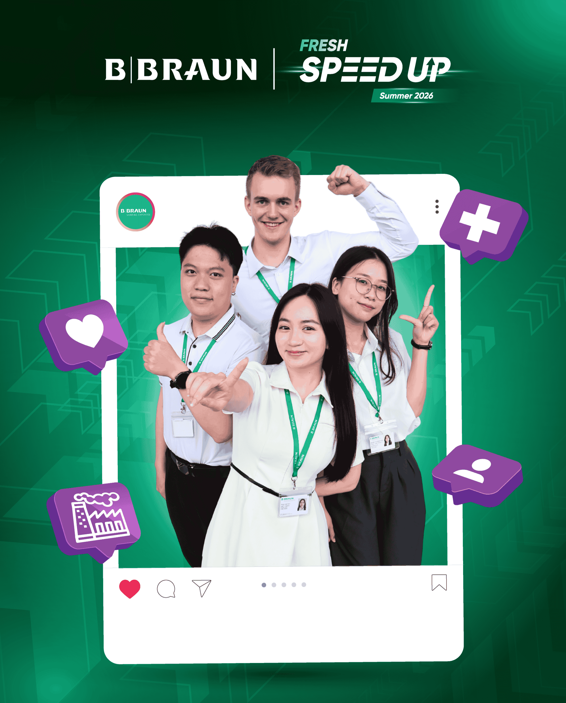 Hiện tại, chương trình Fresh Speed Up Summer 2026 của chúng tôi đã khởi động. Nếu bạn quan tâm, hãy ứng tuyển ngay hôm nay để có cơ hội sở hữu tấm vé trở thành thế hệ nhân sự tài năng trẻ của B. Braun Việt Nam nhé!